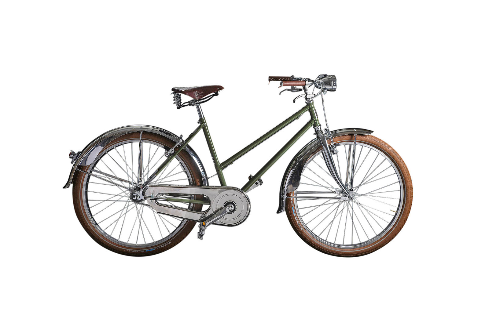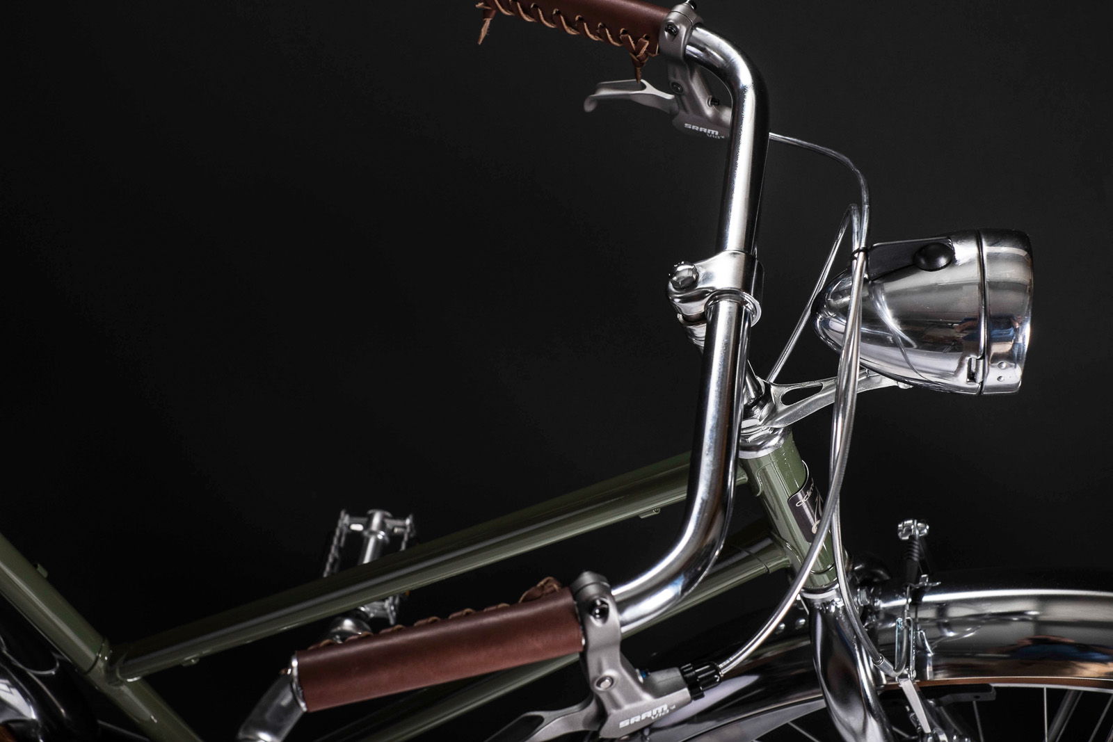 Die Paarung von exclusiven olivgrün Farbe mit den verchromten Bauteilen macht Jota ein elegantes und einzigartiges Fahrrad.