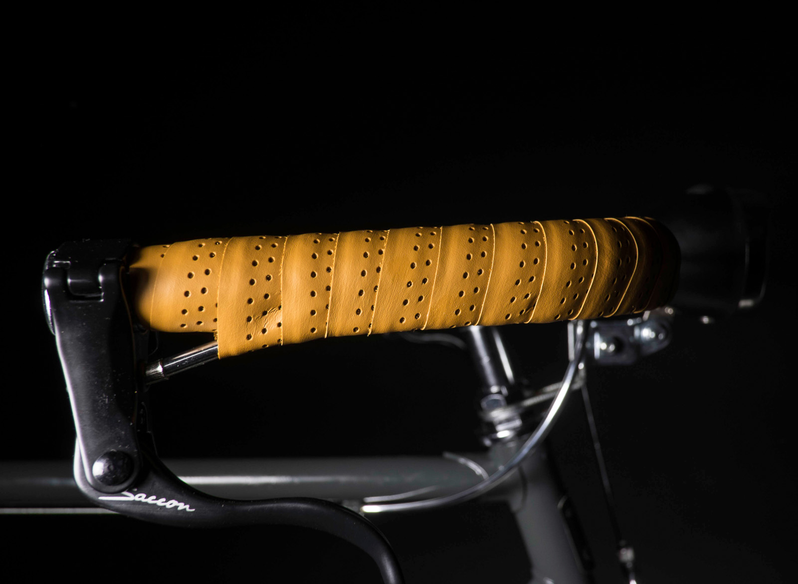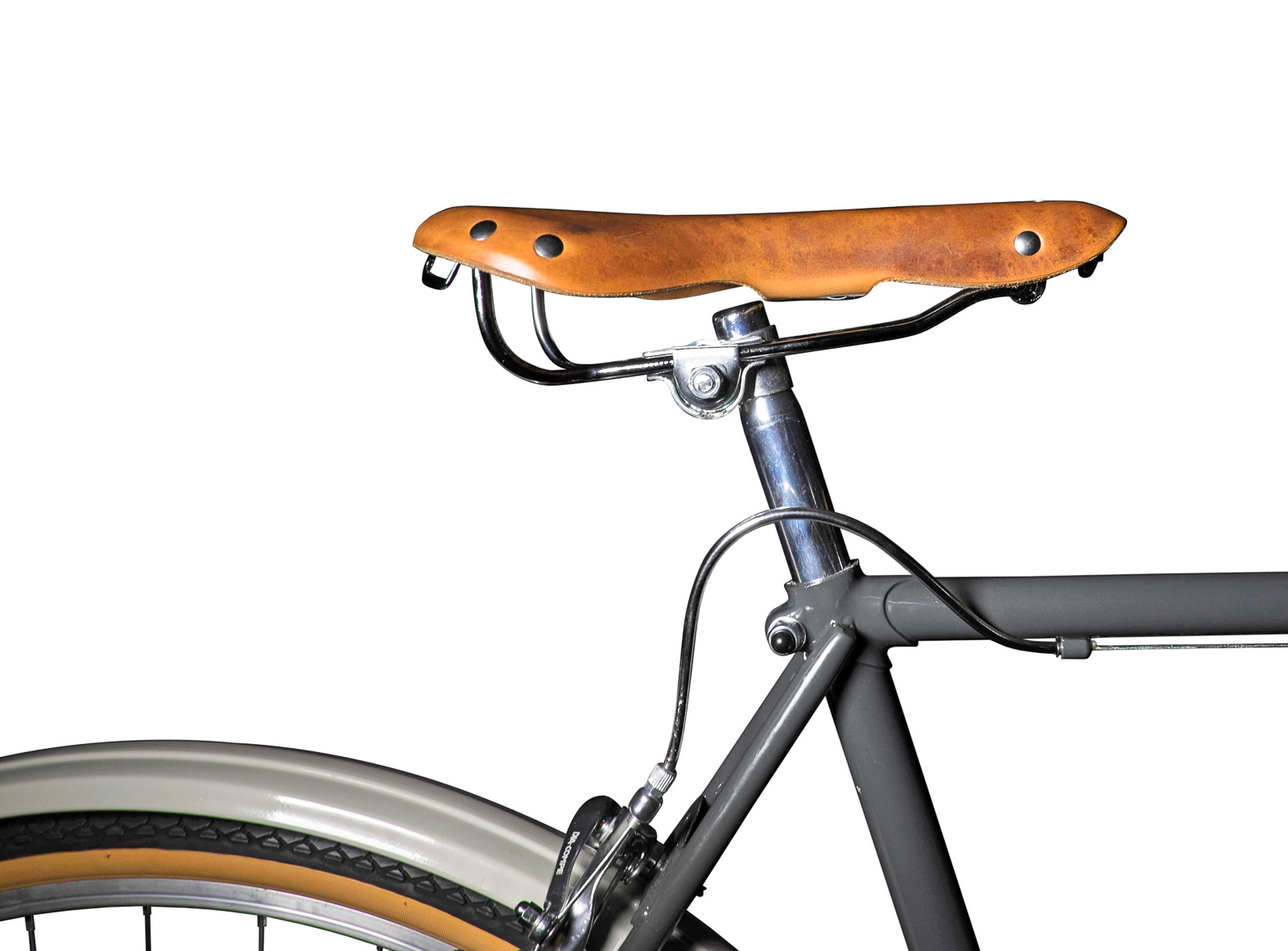 Zweifarbiger Rahmen aus Stahl, lederverkleideter Moustache-Lenker mit umgekehrten Bremshebeln, handwerklicher Sattel aus Leder, automatische SRAM 2-Gang Nabe mit Rücktritt.
